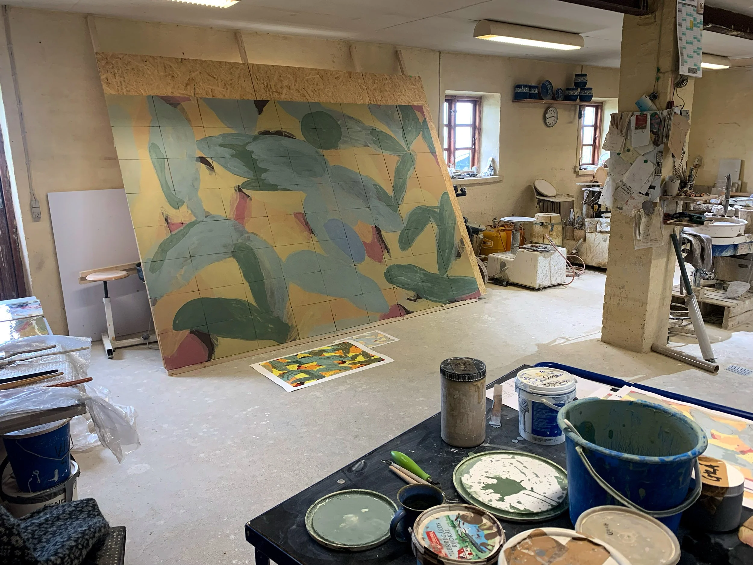 is the title and theme of two large ceramic paintings created for Lysholt. The paintings are based on a winning proposal for a commission at a brand new facility in Ikast-Brande Municipality, Denmark, which is set to open at the end of August 2023. Each approximately 2 x 3 meters in size, the paintings are made of earthenware tiles painted with pickling and fired with a glossy overglaze. They will be mounted on the walls of the building's two larger covered terraces, designed specifically for the house and literally integrated into the building with significant, visible locations.