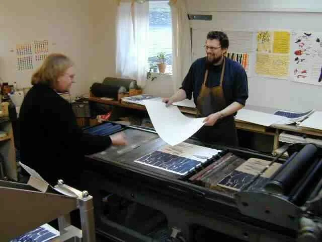 Smukt forseglet i en kassette ligger de 4 firefoldede kraftige ark, som man efter eget valg kan bladre i eller folde ud som store flader. Der medfølger transskription af teksten på dansk og færøsk, - det er altså ikke meningen, at det kun er den grafiske billedside der tæller - Villvísi er både billede og ordbilleder. Og så er det papir. Rigtigt papir, til at holde mellem hænderne, lade fingrene glide over. Papir, ikke bare til at meddele sig på, men papir, der kan smages med alle sanser.
